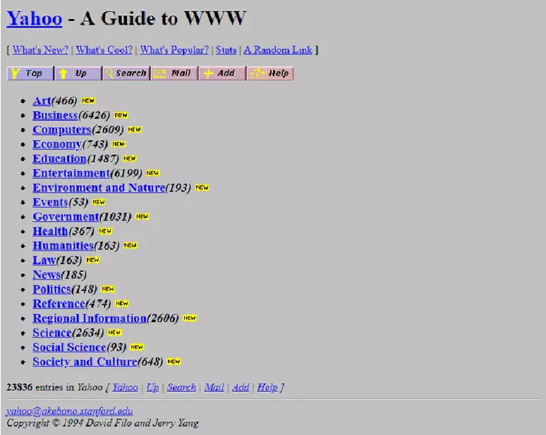 Antigamente os sites eram criados utilizando somente a linguagem HTML. Vejamos a evolução do famoso site Yahoo.